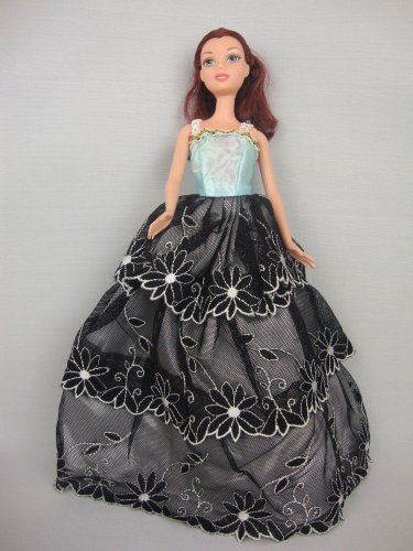 Free Shipping Gown with Blue Botice and a Black Lace Skirt Made to Fit the Barbie Doll @ Amazon.com