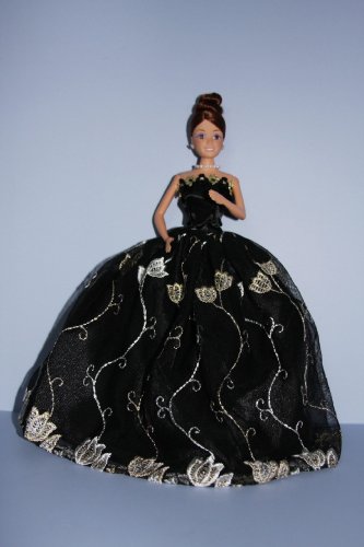 Free Shipping Black Gown with Gold Flowers Motif Made to Fit the Barbie Doll @ Amazon.com