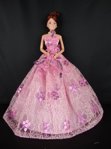 Free Shipping Light Pink Party Dress with Dark Pink Sequins Made to Fit the Barbie Doll @ Amazon.com