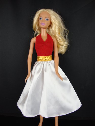 3 Pc SET White Skirt and Red Halter Top and Detactable Gold Belt Great Seperate or Together Made to Fit the Barbie Doll Review
